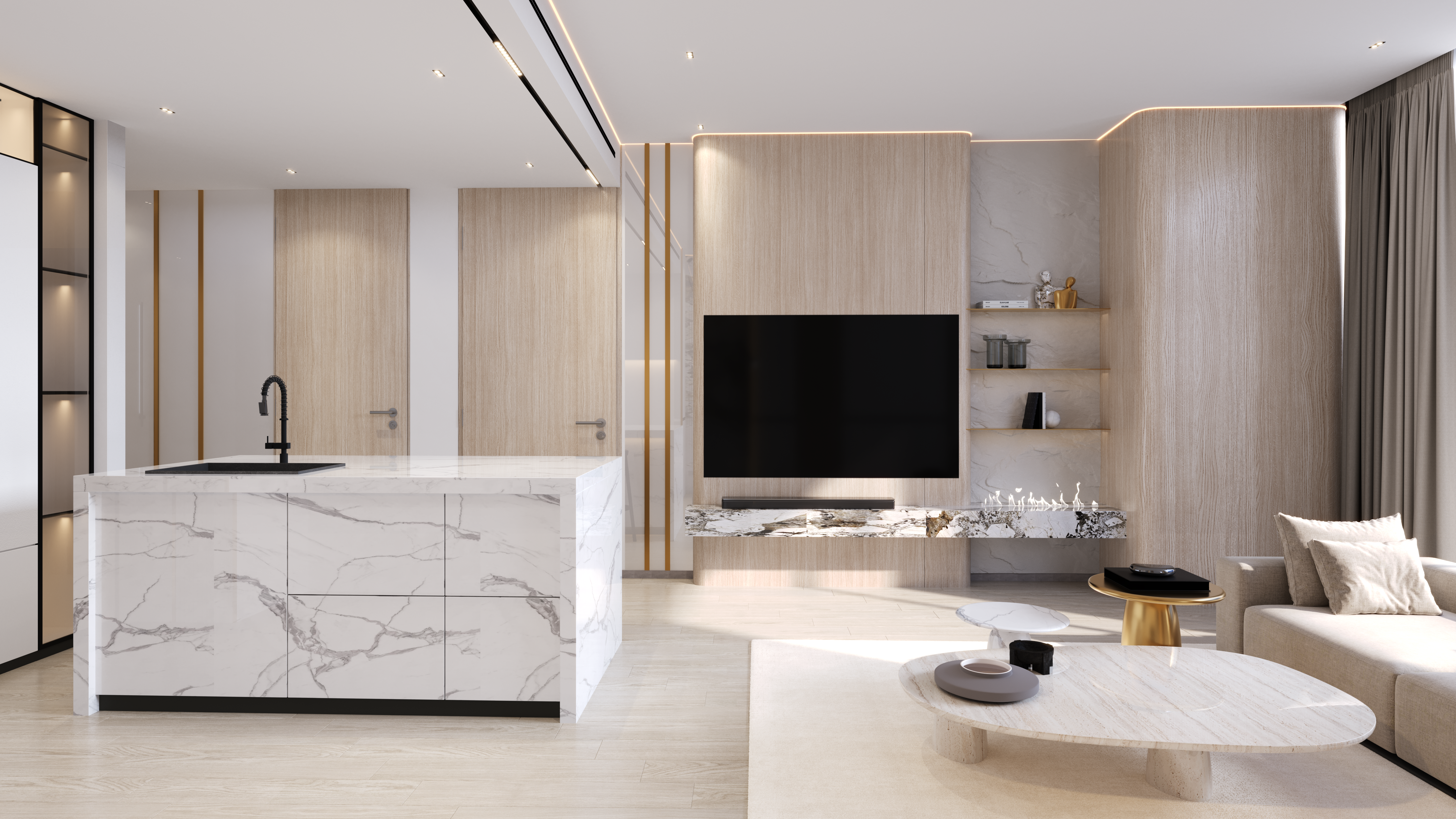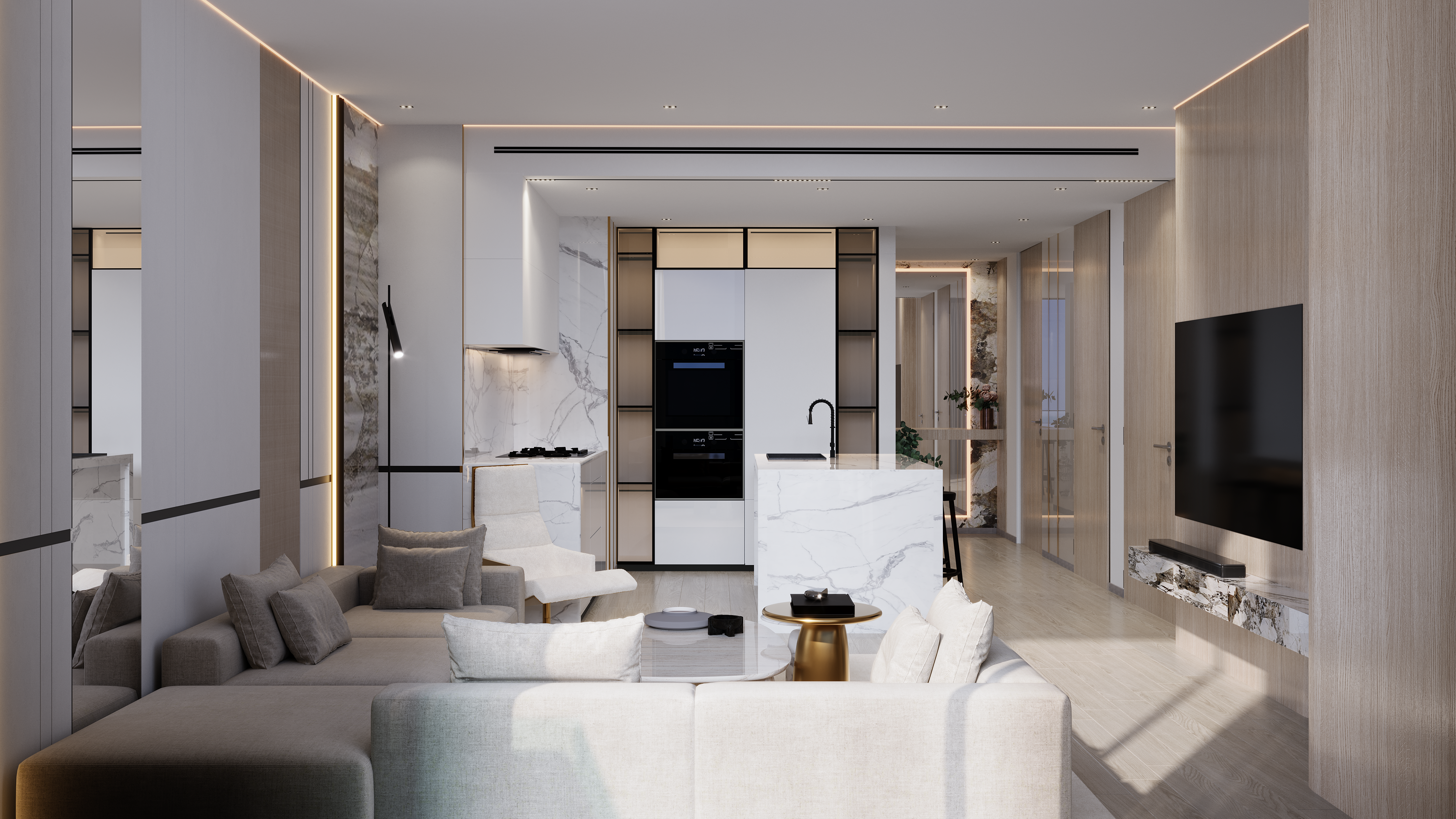 غير مفروشة ويعكس التصميم الداخلي روح الصقل للمشروع. تخلق التصميمات الفسيحة والمتواصلة جوًا متجدد الهواء ومشرقًا. يتم تحسين التشطيبات عالية الجودة والمواد المتميزة الشعور بالبذخ.